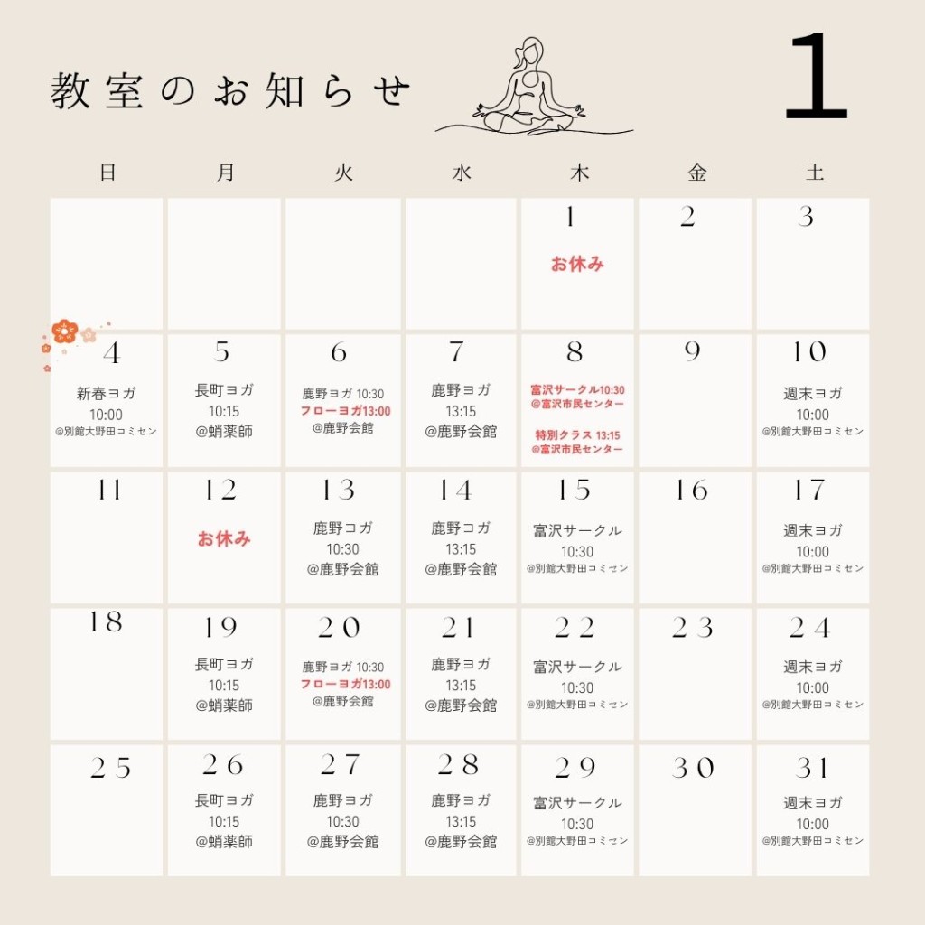 ※1月8日 「木曜日 10:30~富沢ヨガサークル」は富沢市民センターとなります。